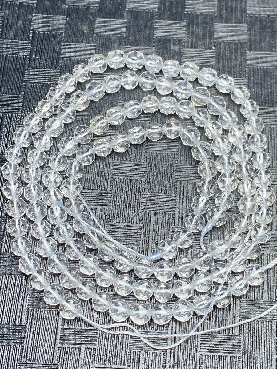 - 即決 0105J669 天然石★【本水晶(クォーツ)】★スターカット1連 6mm 40cm(新品)