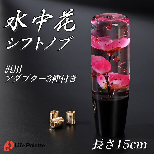 - 水中花 シフトノブ 15cm デコトラ 旧車 街道レーサー カスタムカー ドリフト シフトノブ延長 クリスタル AT MT ピンク 黒 サクラ 桜 汎用