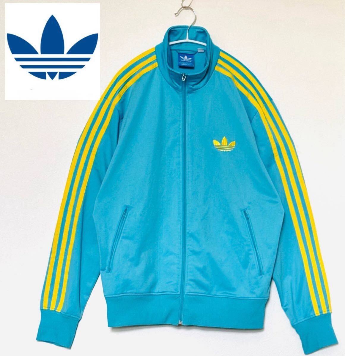 > adidas★FIREBIRD TT★アディダス ファイヤーバード トラックトップ ジャケット ジャージ レアカラー ライトブルー×イエロー Lサイズ相当