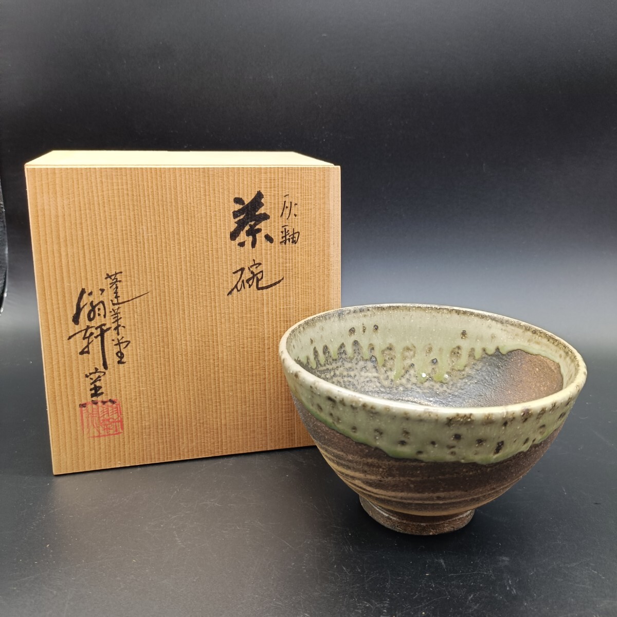 - 常滑焼 蓬菜堂 翁軒窯 灰釉 茶碗 抹茶碗 茶器 茶道具 ウ5