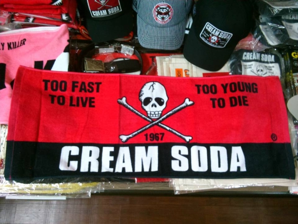 - 430円発送クリームソーダ角ドクロフェイスタオル!検索用CREAMSODAピンクドラゴンブラックキャッツブルーエンジェル昭和レトロガイコツ髑髏