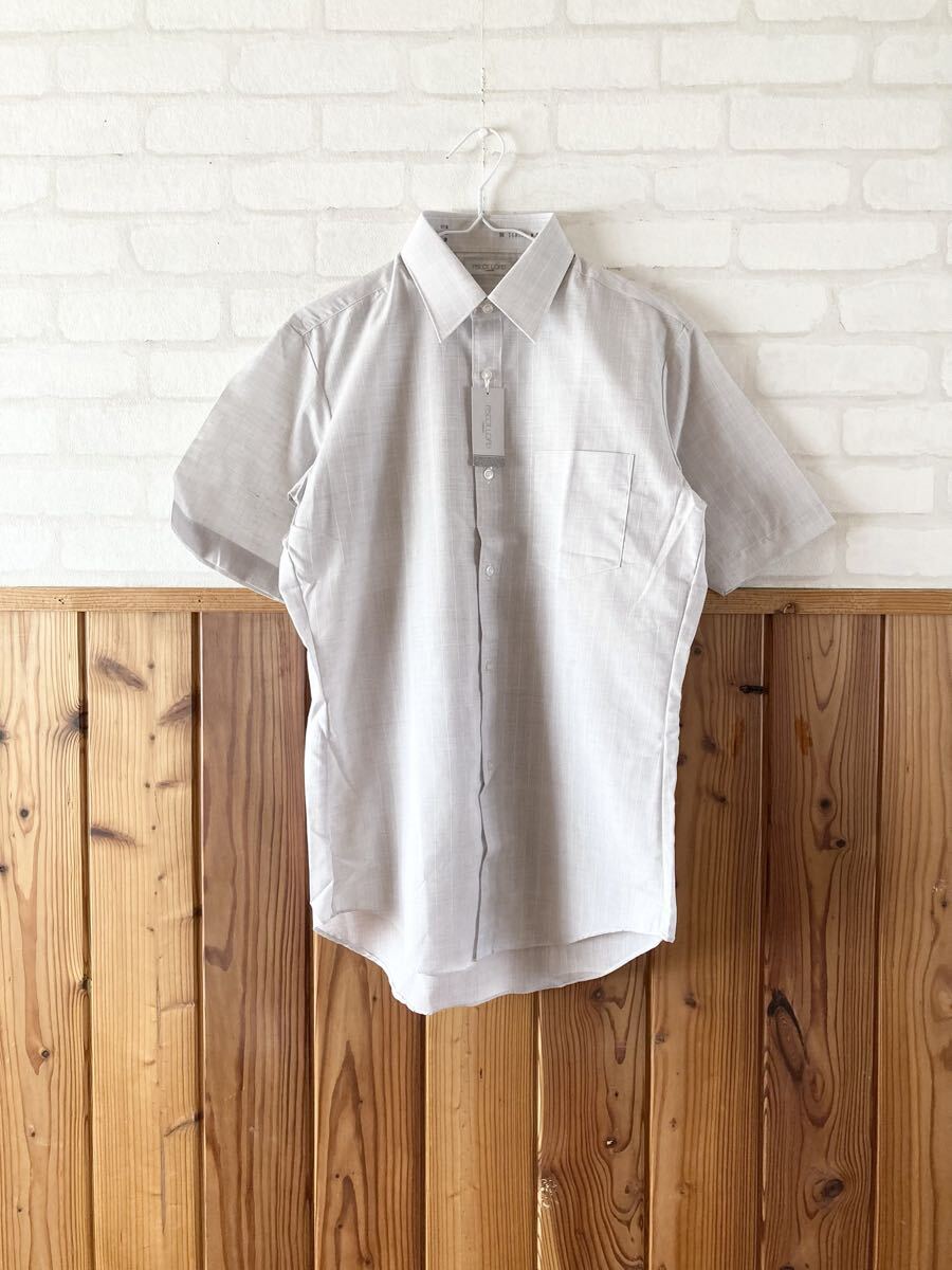 - 訳あり 未使用品 ASCOT LOAD メンズ 麻混 半袖シャツ 38 S-Mサイズ位 ワイシャツ ライトグレー系 リネン混 ビジネス 紳士服 トップス Y