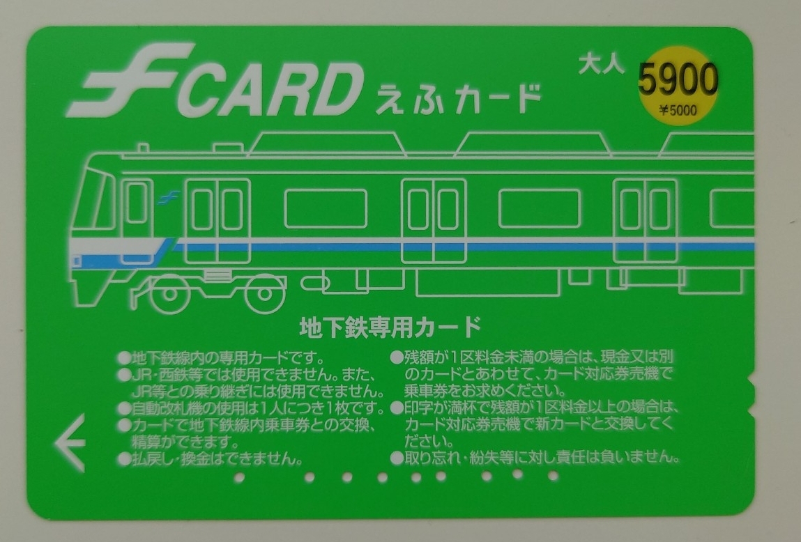 - 【使用済】えふカード 福岡市交通局 地下鉄専用カード 5000円券