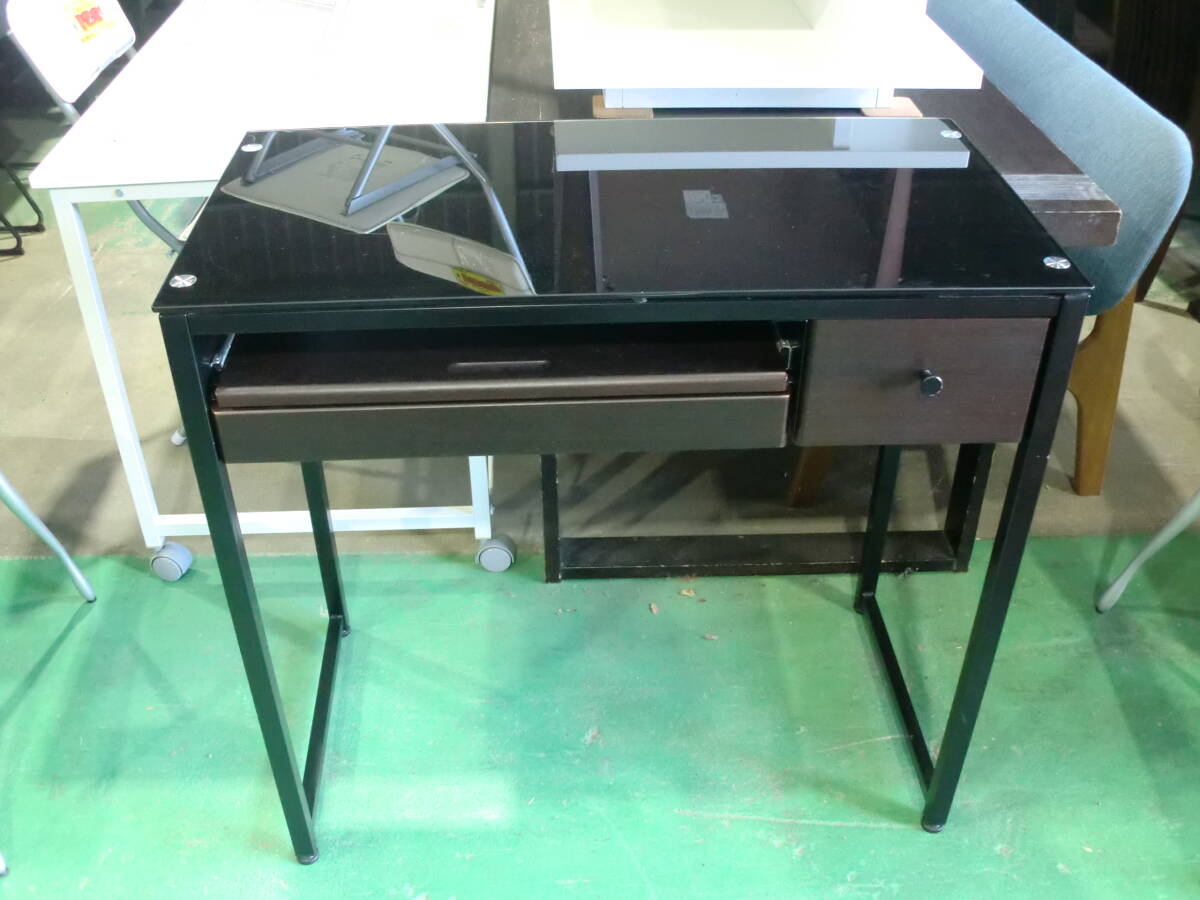 - ♪♪【7H8④aa】【群馬】PCデスク ガラス天板 スチールフレーム製 幅85cm スライドトレー付 パソコンデスク ラック ♪♪
