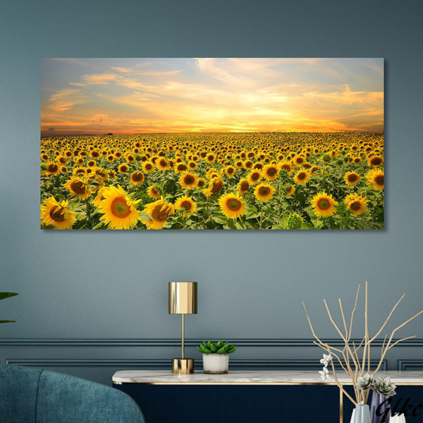 - 【夕陽とひまわりの華やかなパネル】 アートパネル 50×100cm 壁掛け 防水 キャンバスアート インテリア ひまわり 夕焼け ギフト