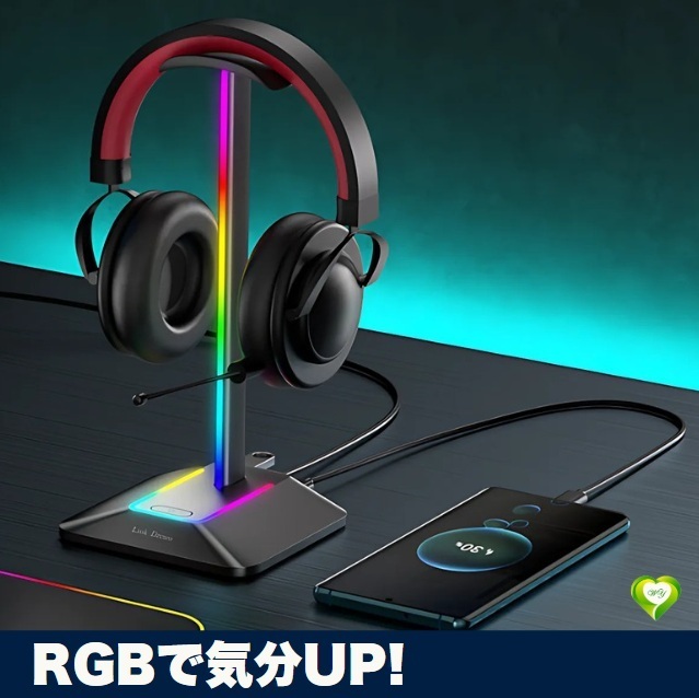 > 【RGBで気分UP】ヘッドフォンスタンド ヘッドホンスタンド ヘッドセット ハンガーRGBライト付き USBポート付き 快適 便利