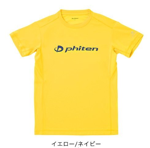 - [ファイテン] RAKUシャツ 半袖 Tシャツ Phitenロゴ イエロー/ネイビー XOサイズ