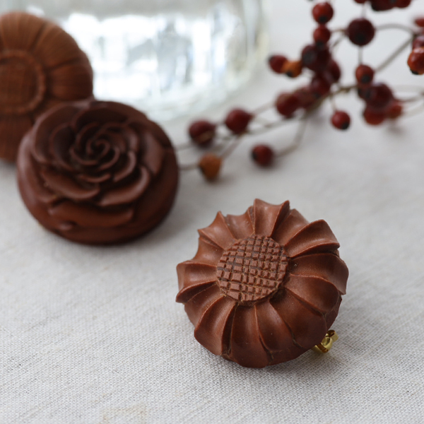 - 最終SALE 手彫り ウッド ブローチ ウッドカービング 天然木 お花モチーフ ブラウン プチギフト Q01C