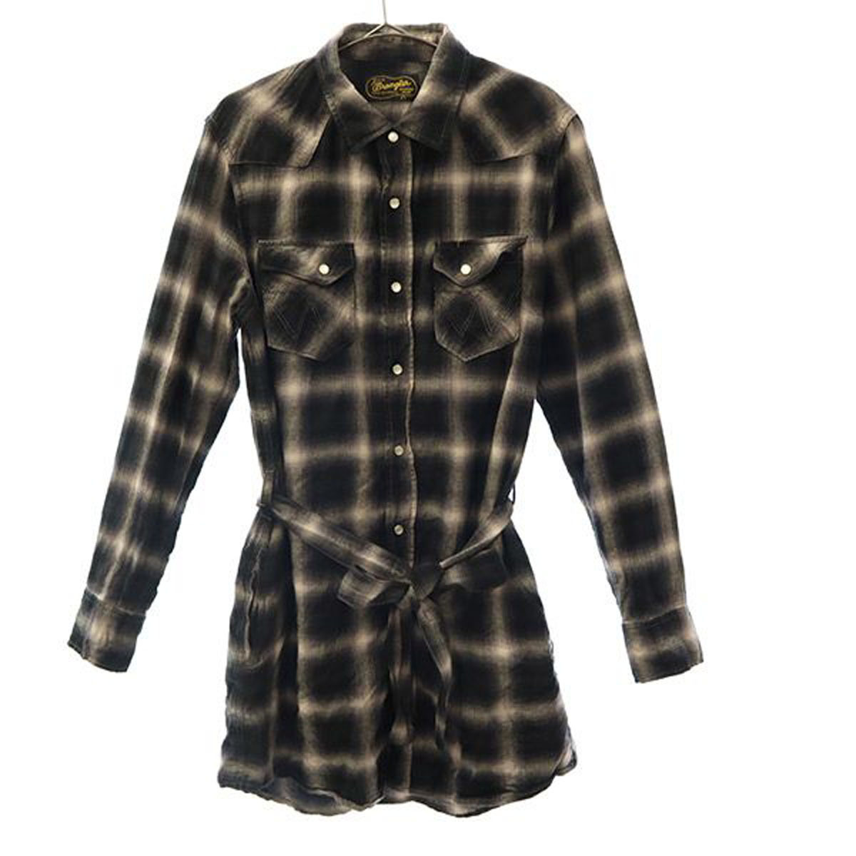 Wrangler ラングラー チェック柄 長袖 ワンピース M ブラック系 チュニック レディース