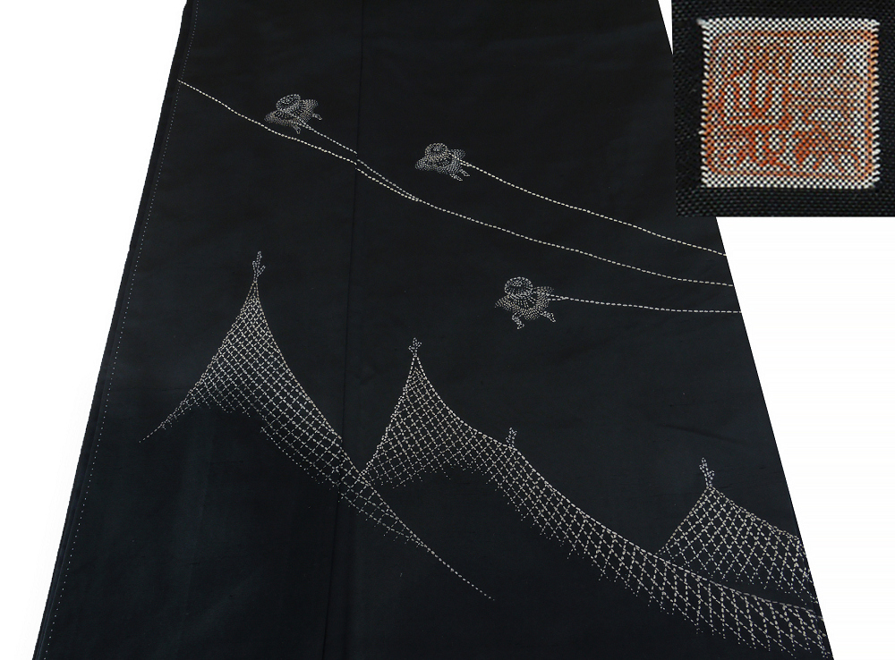 - 【京かんざし】b-381★作家物 落款有 白山紬訪問着 刺し子「健勝苑謹製ガード加工」身丈165 cm裄丈65 cm★即決送料無料!
