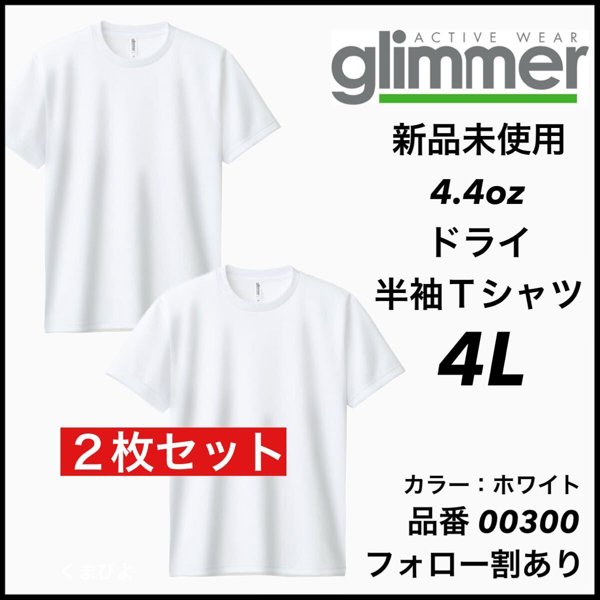 > 新品未使用 グリマー 4.4oz ドライ半袖Tシャツ 白 ホワイト 2枚セット 4Lサイズ スポーツ トレーニング 吸汗速乾 ユニセックス glimmer
