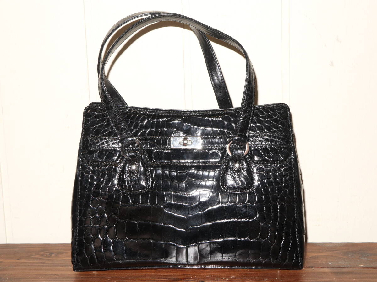 - 美品 JRA iii sanpo シャイニークロコダイル ハンドバッグ / クロコ クロコダイル バッグ トートバッグ サンポー 三宝