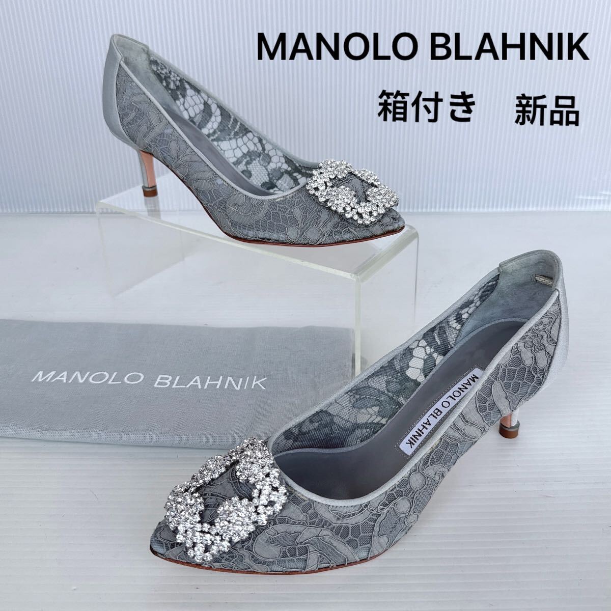 > MANOLO BLAHNIK HANGISI マノロブラニク ハンギシ レース クリスタル装飾 ビジュー ハイヒール パンプス 新品 レーディス シューズ 靴 35