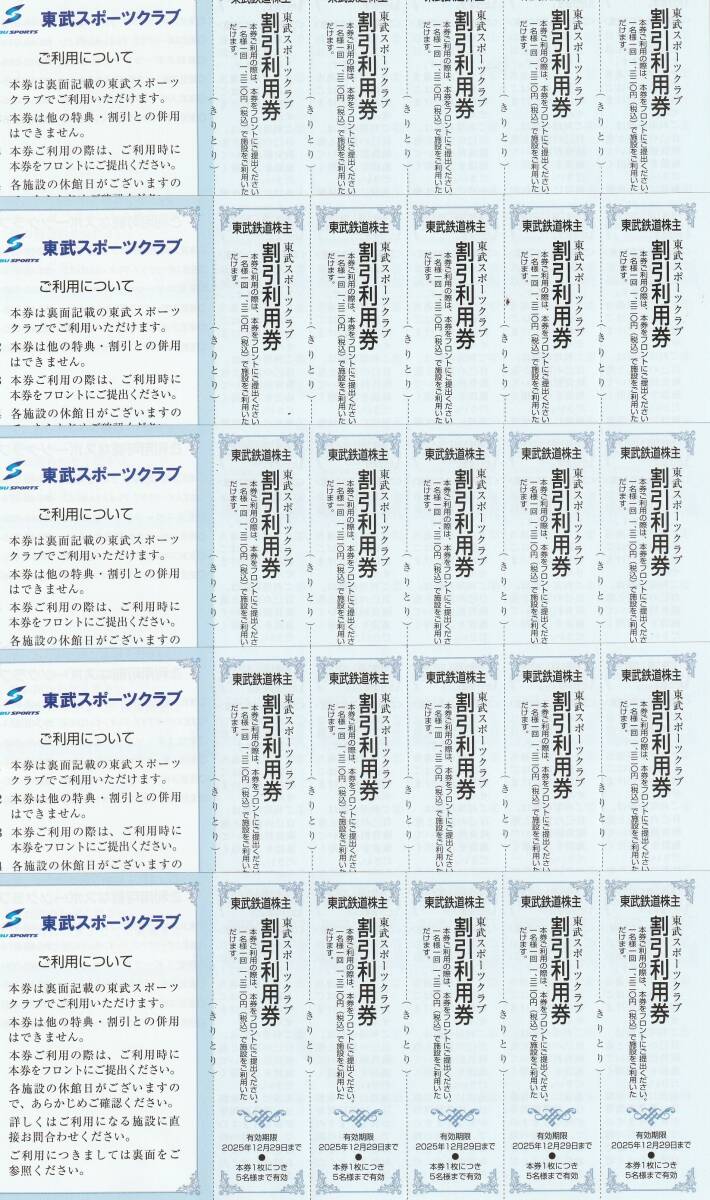 - 東武鉄道株主★東武スポーツクラブ★割引利用券(施設利用割引券)★5シート(25枚セット)★即決