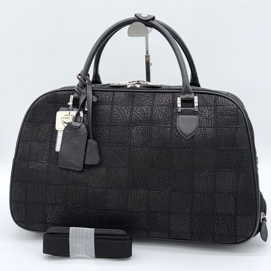 - 【極美品】SHARK SKIN シャーク サメ 鮫 ボストンバッグ トラベルバッグ 2way キャリーバッグ ブラック メンズ レディース CC680729A
