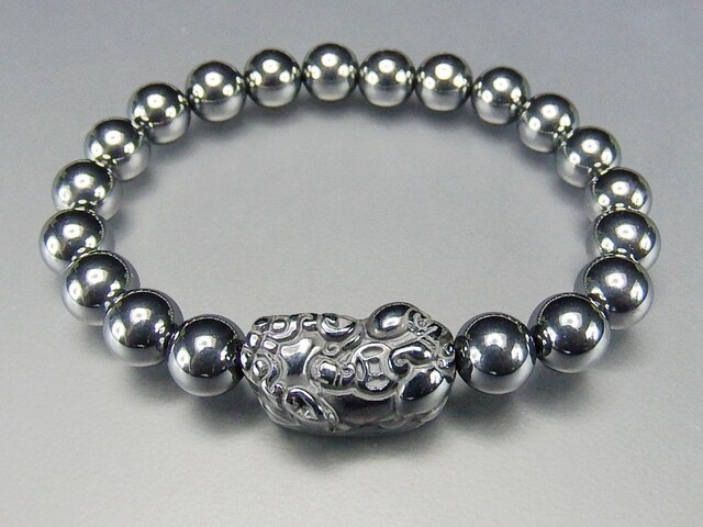 - AAA高純度テラヘルツ鉱石約8mm強ヒキュウ彫刻数珠ブレスレットプライム