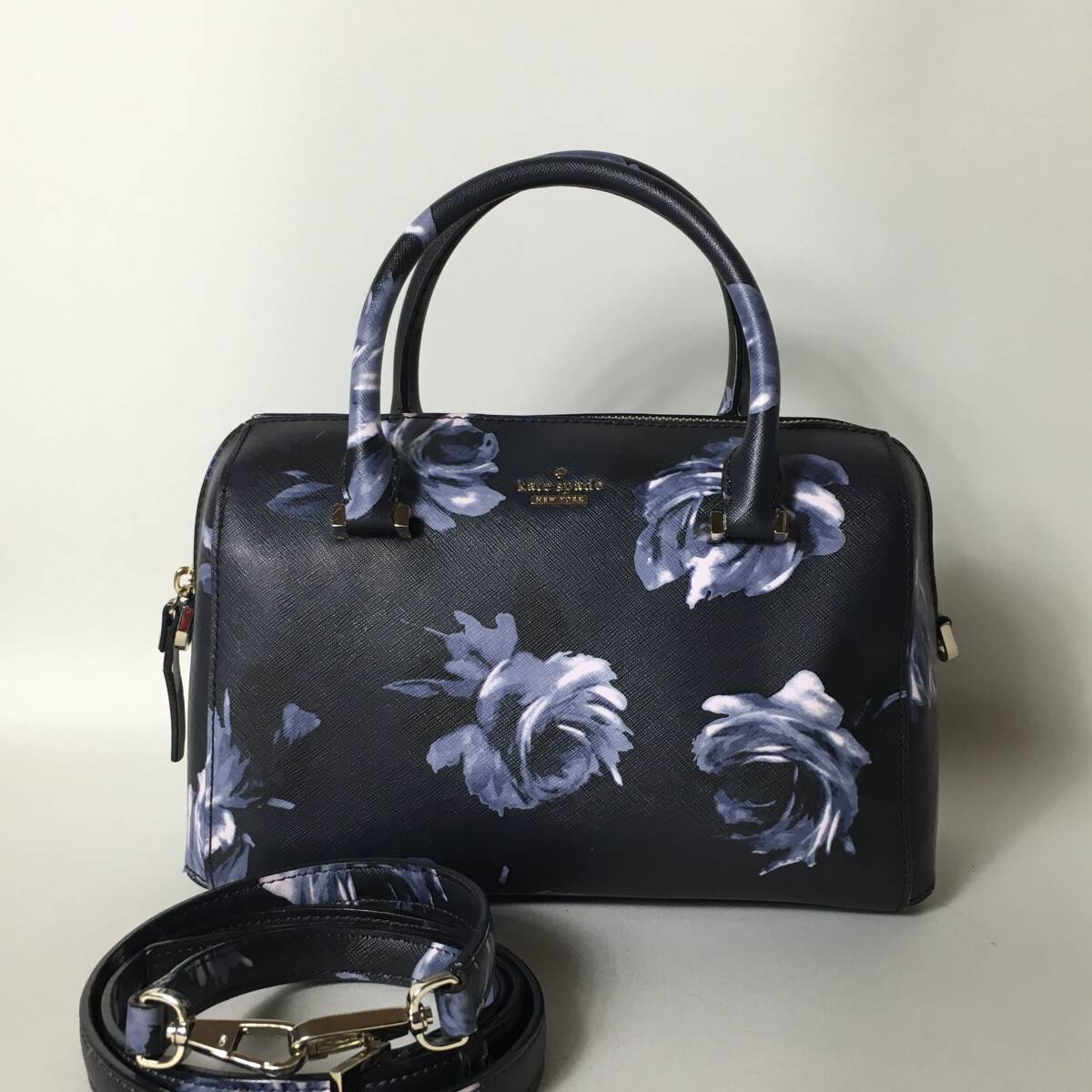 - 77B232|美品|ケイトスペード 2WAYバッグ レザー ブラック 花柄