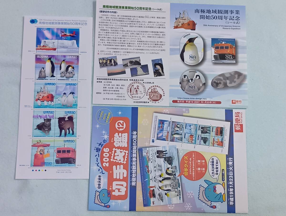 南極地域観測事業開始50周年記念 H19 切手シート1枚と解説書と切手図鑑 Y