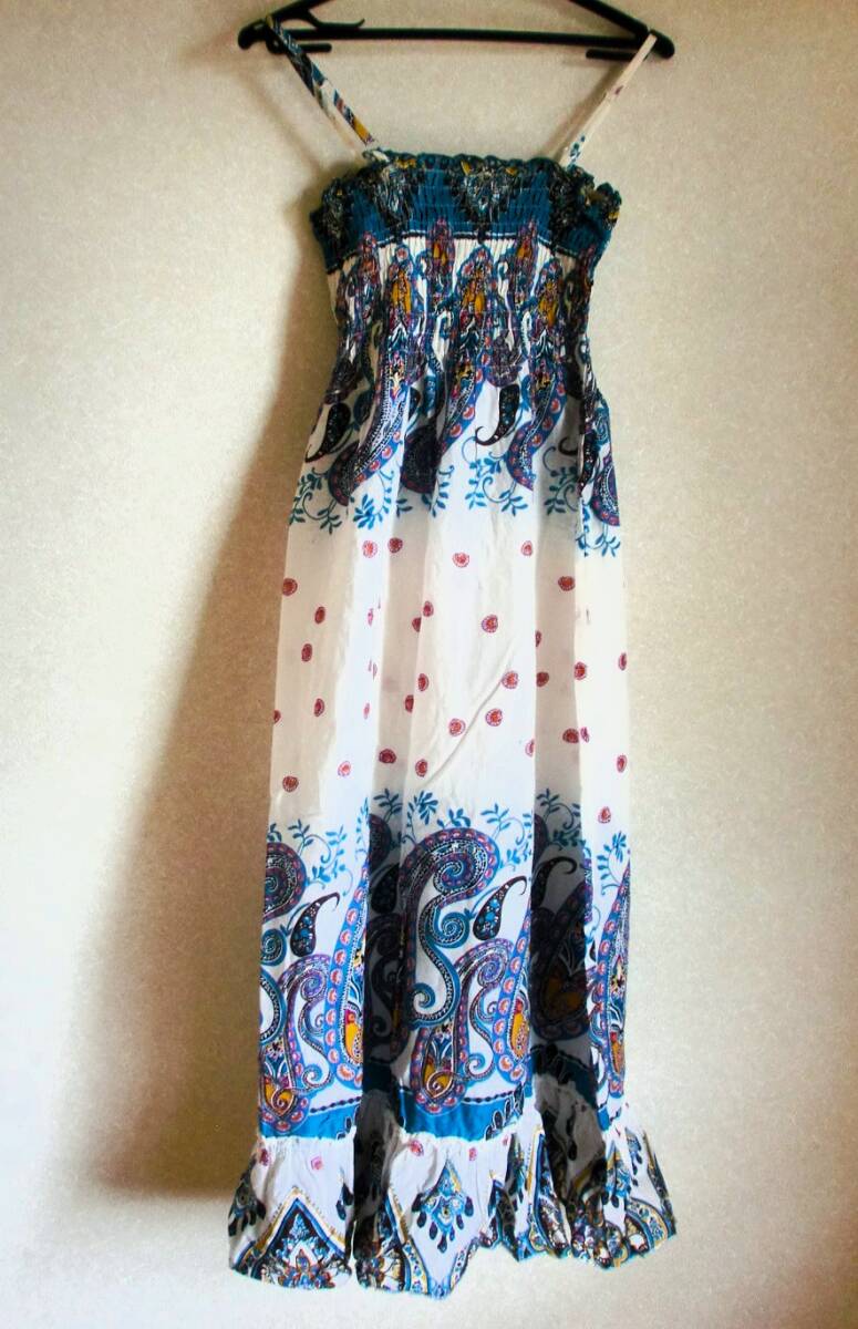 > ハワイ購入マキシ丈ティアードフリルAラインフレアーキャミソールワンピースリゾートドレスエスニックロングアジアンAMINAアミナチャイハネ