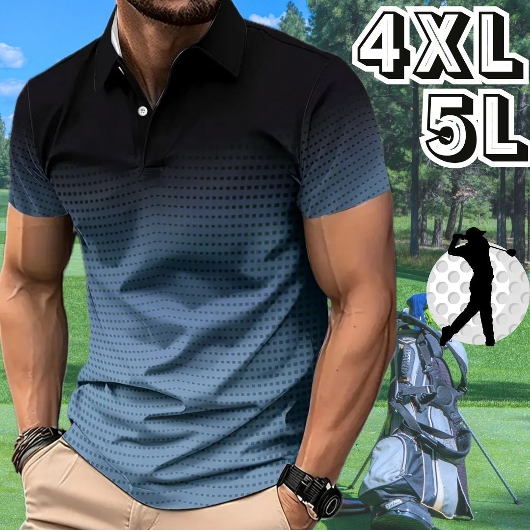 - メンズ ゴルフウェア ポロシャツ 春夏 夏 半袖 シャツ ブラック 黒 ブルー 青 グラデーション★大きいサイズ 4XL 5L XXXXL★スポーツウェア