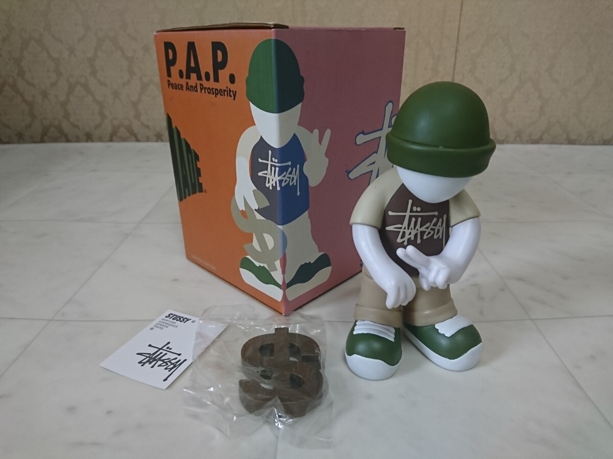 > STUSSY×MEDICOM TOY フィギュア P.A.P CUSTOMADE ステューシー メディコムトイ ピースサイン $ カーキ