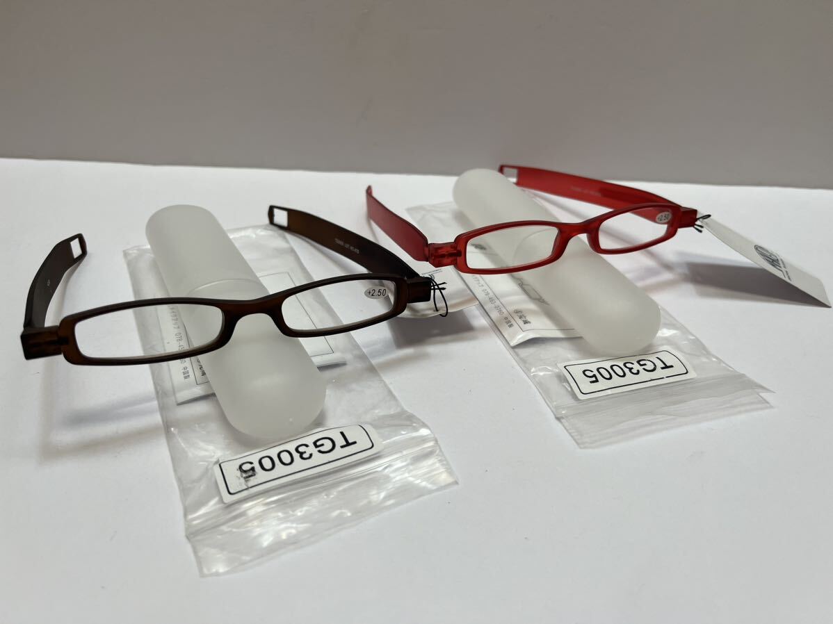 - 新品 +2.5 老眼鏡セット コンパクト 折りたたみ シンプル ブラウン レッド