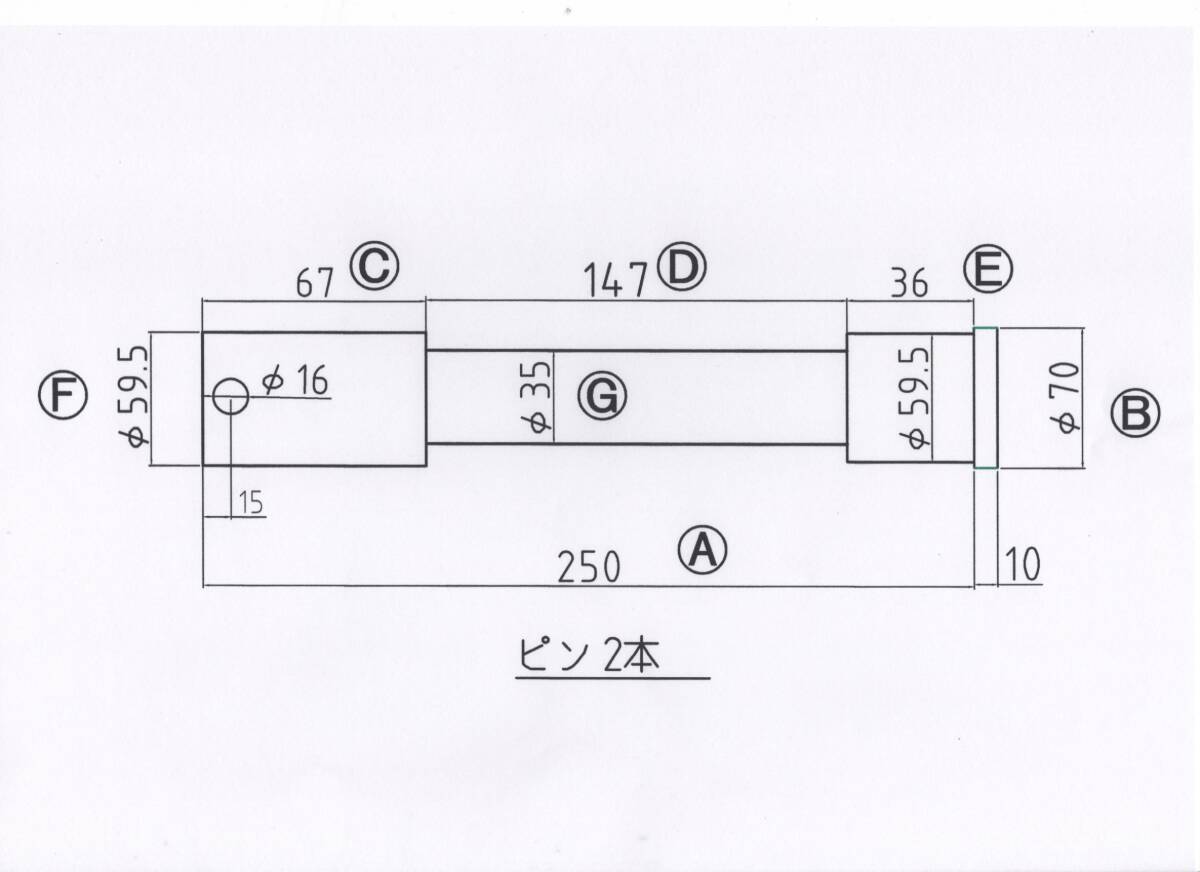 - NO.2102 Φ35用 ツバ下250mm 中間φ35部分147mm 鍔付きバケットピン