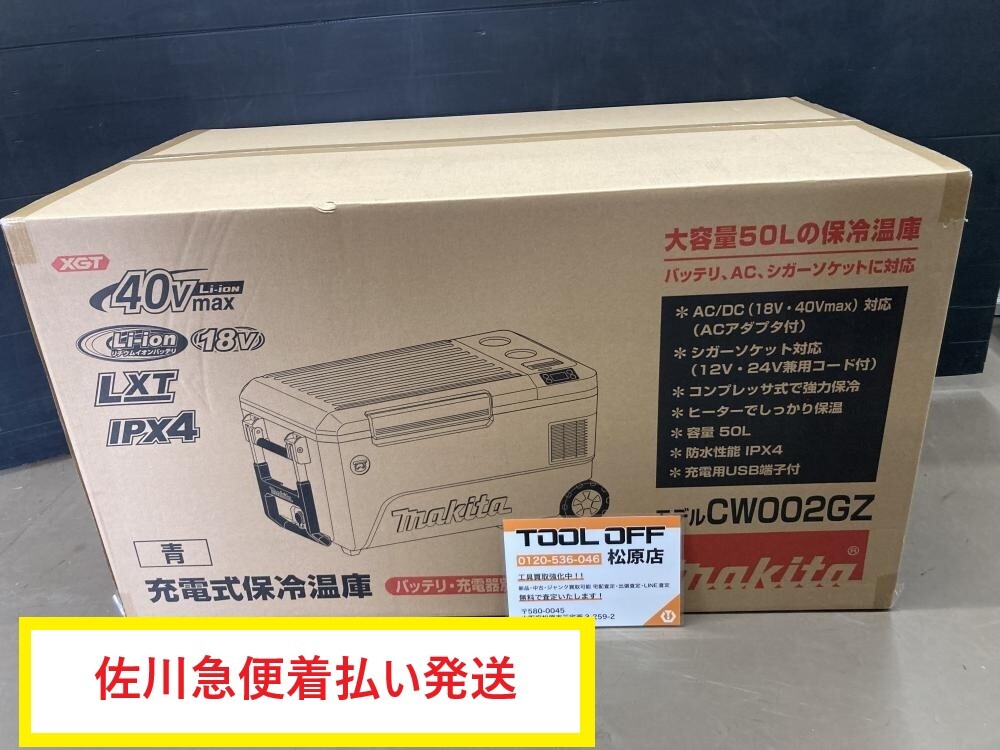 > 013♪未開封品・佐川着払発送♪makita マキタ 充電式保冷温庫 本体+ACアダプタ等標準付属品 CW002GZ 40Vmax、18V、100V 内容積:50L 青