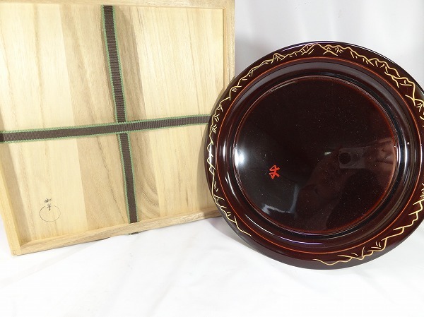 - 8Wh/3-1 塗師:前端雅峯 作 幸盆 金蒔絵山文 菓子器 茶道具 共箱