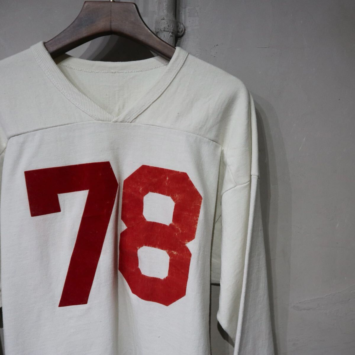 - 【即決】70s フットボール Tシャツ ホワイト レッド 白 赤 短丈 古着 ヴィンテージ ビンテージ