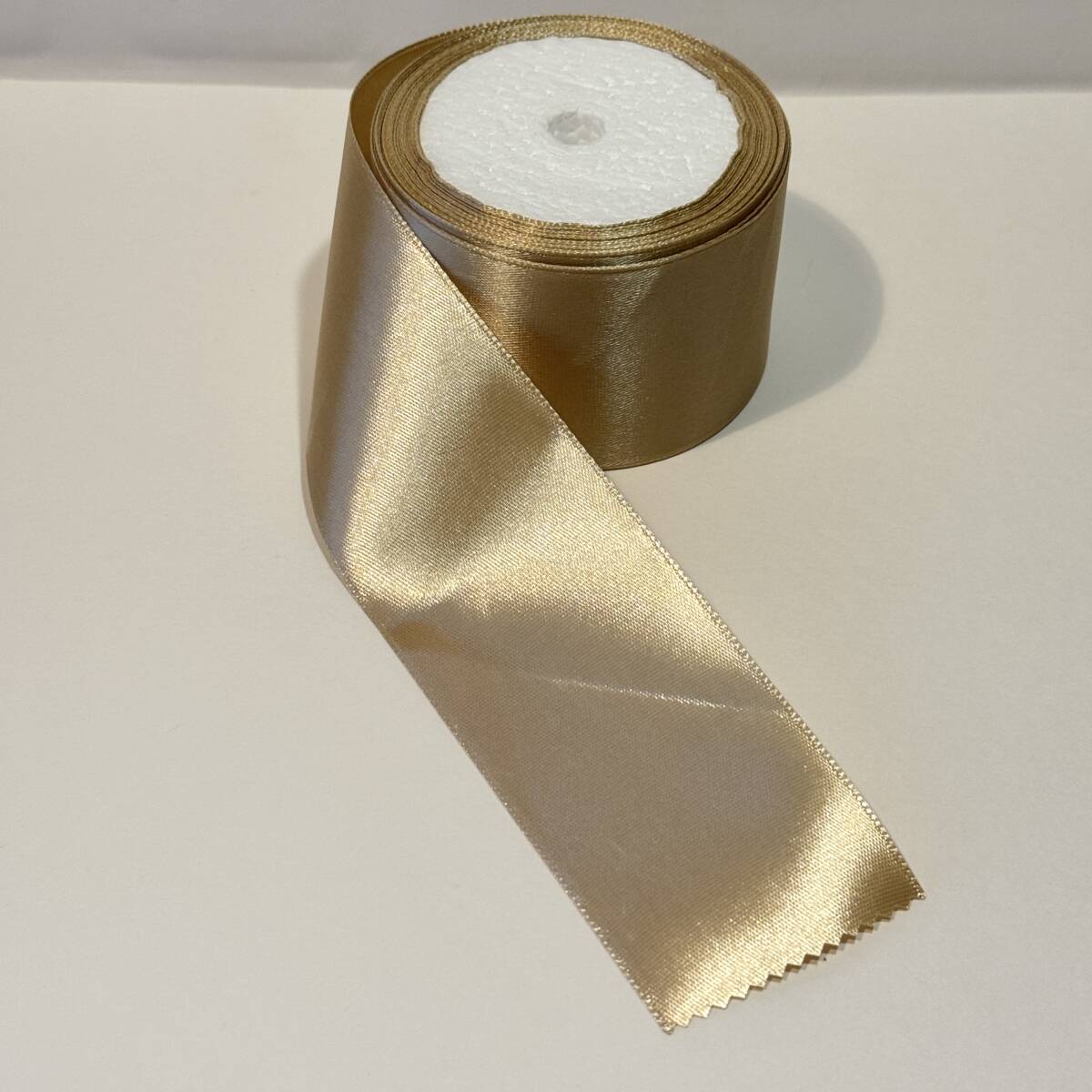 - 【カット売り:50cm単位】新品未使用分 50mm幅 両面サテンリボン ゴールド 金茶 クラフト ラッピング ヘア小物 コスプレなどに