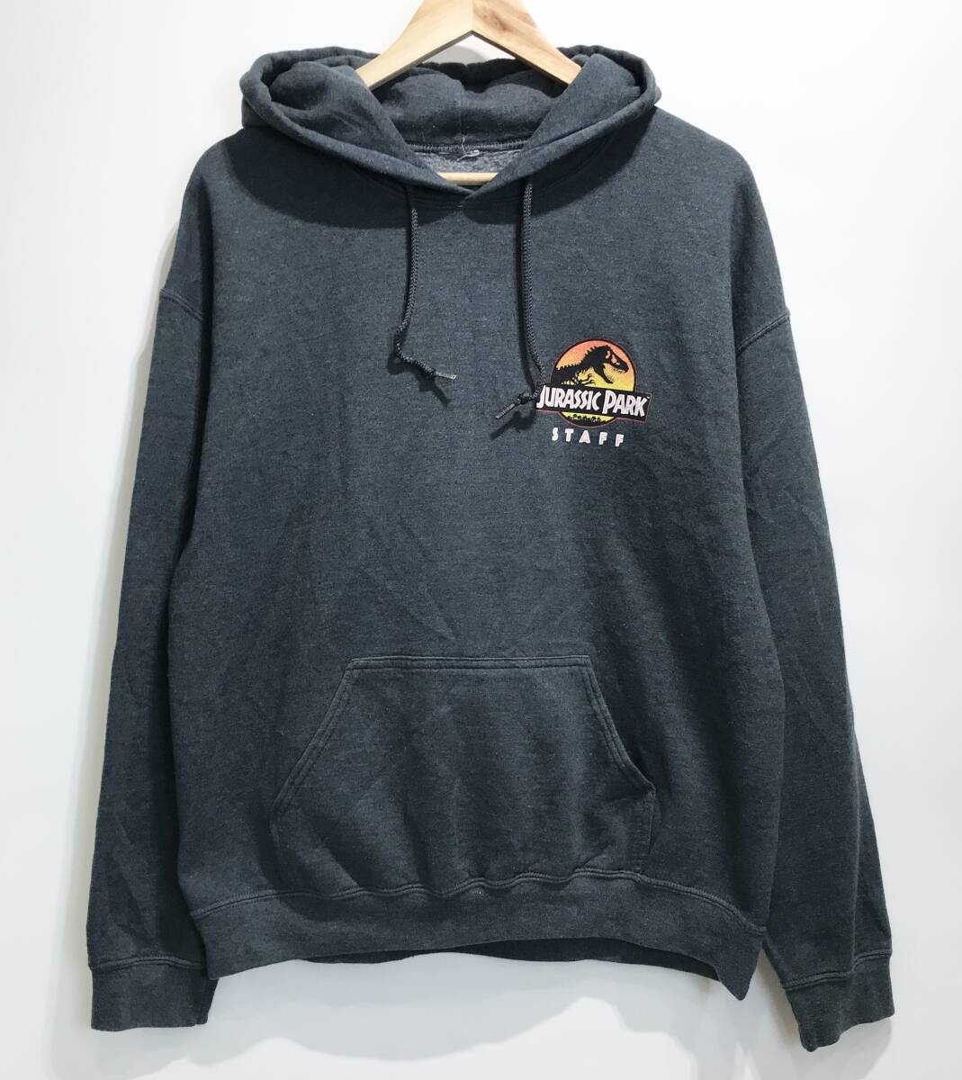 - JURASSIC PARK レンジャースタッフユニフォームパーカー 裏起毛 ロゴ スウェット ムービー 映画 ジュラシックパーク 古着 SIZE:L■0812G