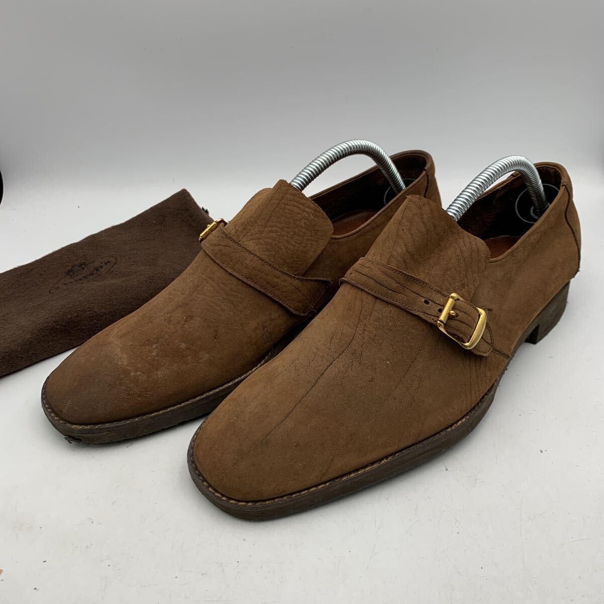 > T403 英国製 church's チャーチ ビジネスシューズ モンクストラップ サイズ不明 26.5cm 〜 27cm ブラウン ヌバック イングランド製 袋付き