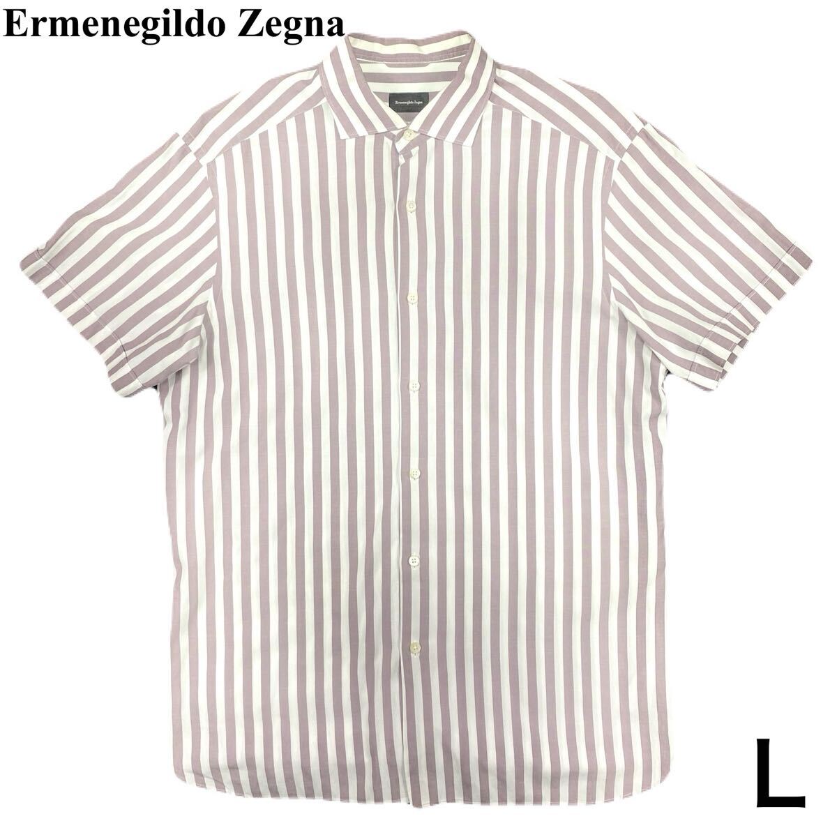 - Ermenegildo Zegna ゼニア 半袖 シャツ カッタウェイ ホリゾンタルカラー ボタン刻印 ストライプ メンズ あずき色 180/100A L