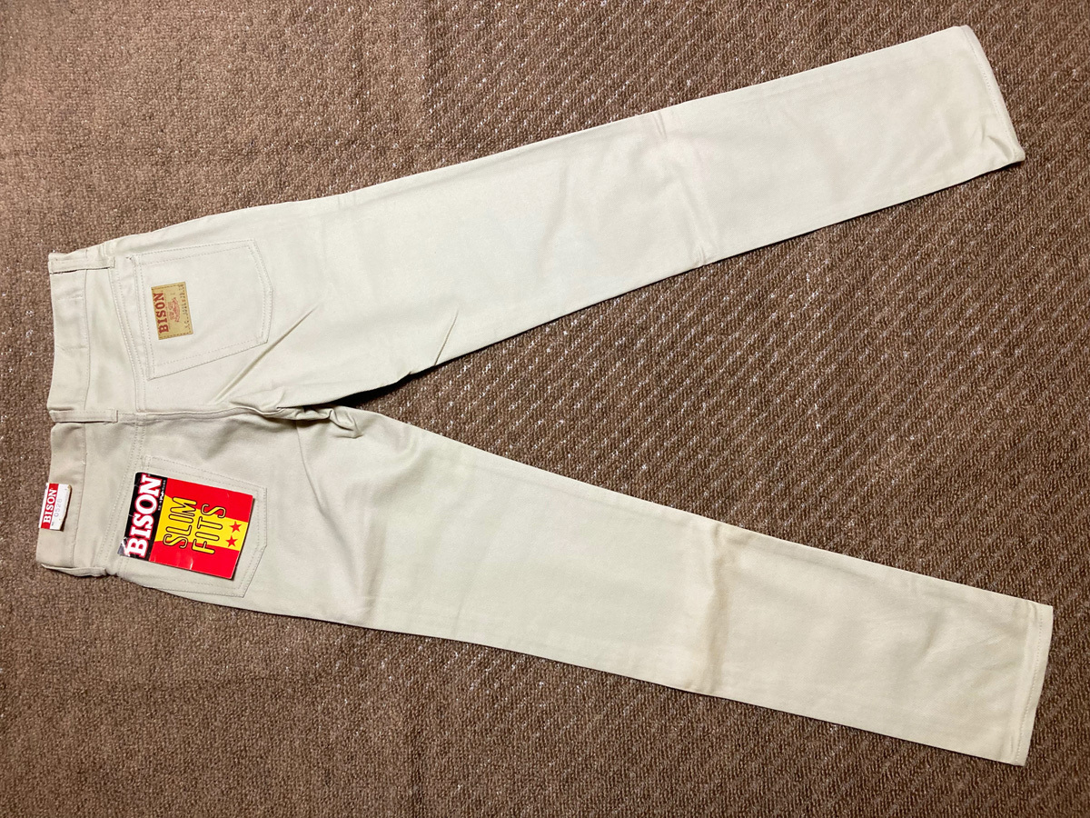 - ♪フラッシャー付新品 日本製 Made in Japan BISON 5C 0528 SLIM FITS COLOR PANTS バイソン スリムフィット カラーパンツ W28 ベージュ♪