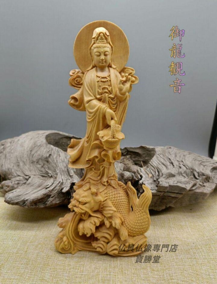 - 精密彫刻 大迫力 木彫仏像 魚籃観音 観音菩薩 立像 高さ18cm【送料無料】【仏具仏像専門店寶勝堂】