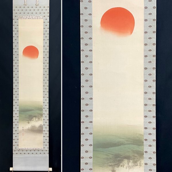 > H17M08[真作]今井景樹「旭波」掛軸 絹本 山水図 肉筆/ 四条派の画家 今尾景年に師事 三重の人 共箱 旭日 朝日 朝陽