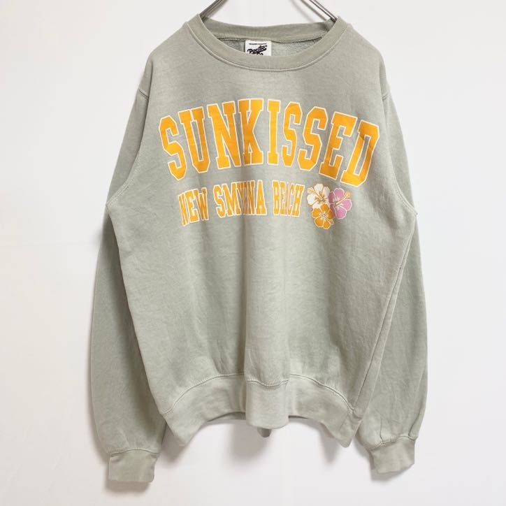 - 古着 used Pacific&Co 長袖ロゴプリントスウェット トレーナー クルーネック ニュースムーナビーチ グレー Sサイズ