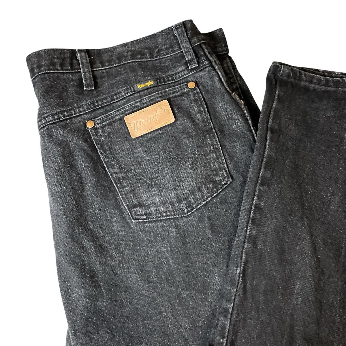 - wrangelr ブラックデニム ジーンズ極太 革パッチ 90s 00s デニムパンツ ジーパン ジーンズ ラングラー ビッグシルエット W44 L30