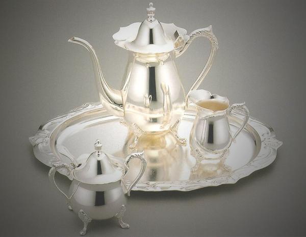 - ☆早川シルバーローズコーヒーポット・シュガーポット・ミルクポット・トレー4点セット日本工業規格3種銀鍍金日本製新品