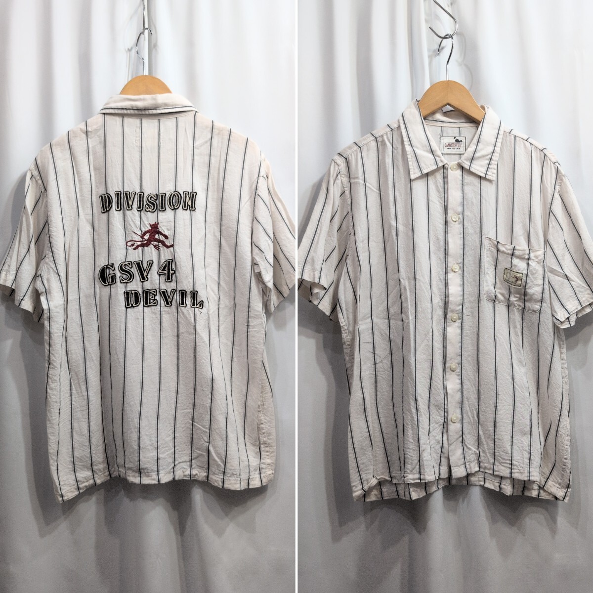 > GANGSTERVILLE ギャングスタービル ストライプ 半袖シャツ M メンズ ワークシャツ グラッドハンド/ウィアード/ルードギャラリー 日本製