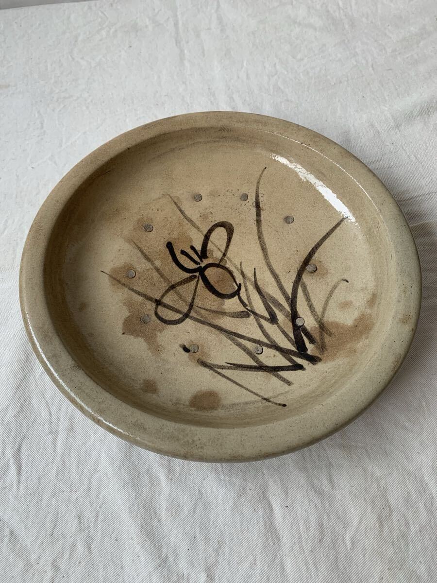 > 旧家蔵出し デザインが素敵な石皿 焼物古道具骨董古物古美術時代物コレクションアンティーク什器インテリアディスプレイ陶磁器民藝民芸飾り