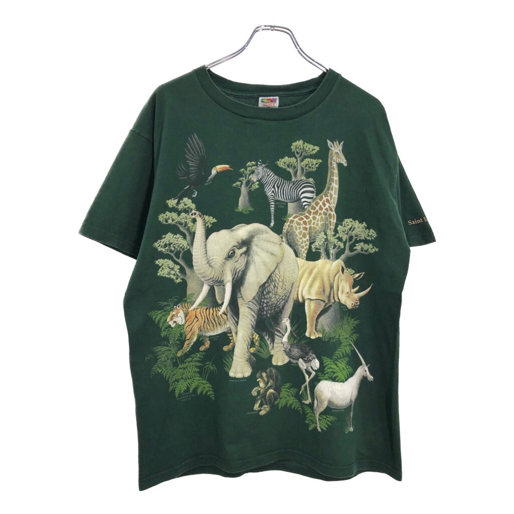 - 00年代 FRUIT OF THE LOOM フルーツオブザルーム アニマルプリント 大判プリント 半袖Tシャツ グリーン(メンズ L)中古 古着 U2658