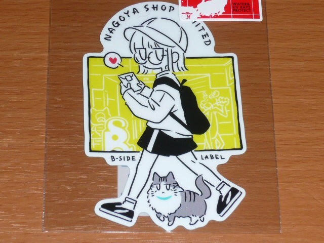 - ◆シウチトモミ ステッカー◆名古屋限定◆デフォ 散歩ガール 猫◆B-SIDE LABEL◆