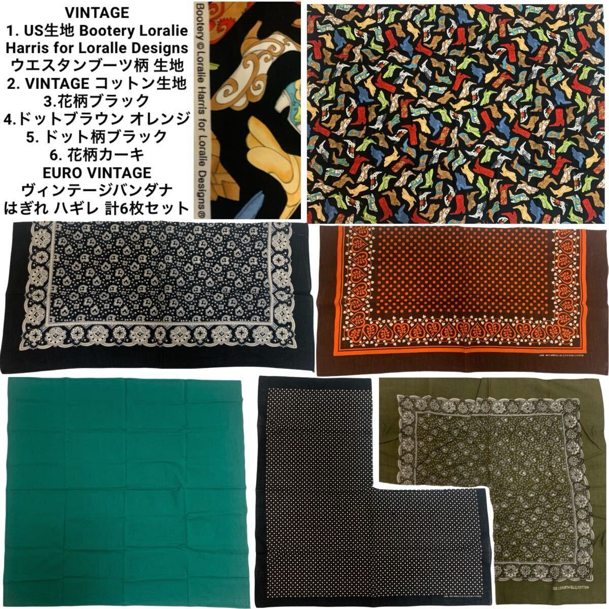 > VINTAGE ヴィンテージ 1. US生地 ウエスタンブーツ柄 生地 2. VINTAGE 生地 3.4.5.6 EURO VINTAGE バンダナハギレ 計6枚セット アーカイブ