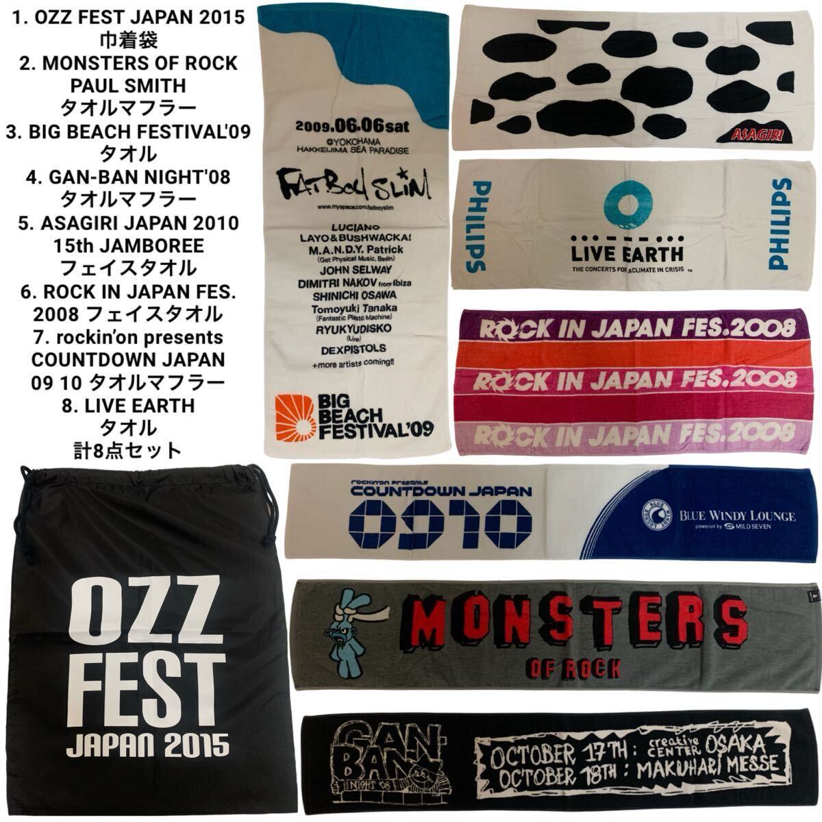 > OZZ FEST 2015 MONSTERS OF ROCK BIG BEACH FESTIVAL'09 GAN-BAN NIGHT08 ASAGIRI 2010 ROCK IN JAPAN等 袋 タオル 8点セット アーカイブ