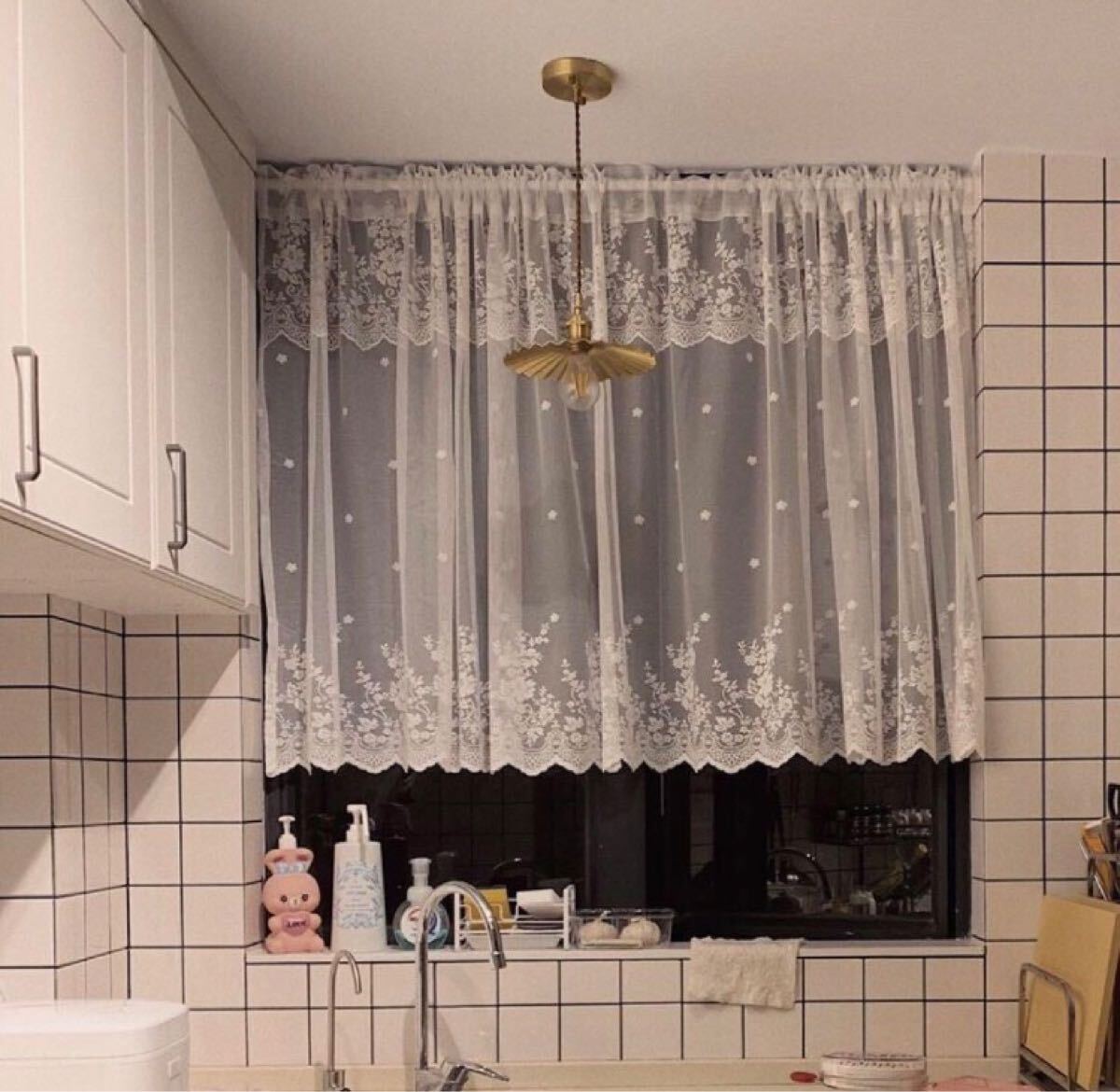 - レースカーテン ホワイト 幅100cm 丈127cm 1枚 カフェカーテン 突っ張り棒タイプ 白 刺繍 間仕切り 小窓
