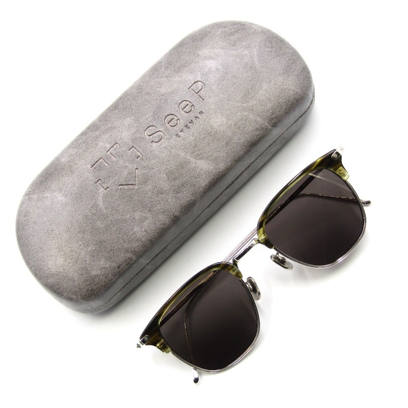 - 美品 EYEVAN7285 アイヴァン7285 サングラス MODEL.736 日本製 ブロウ スクエア 偏光 ダルマリム 4021 イエローササ/シルバー 65008372