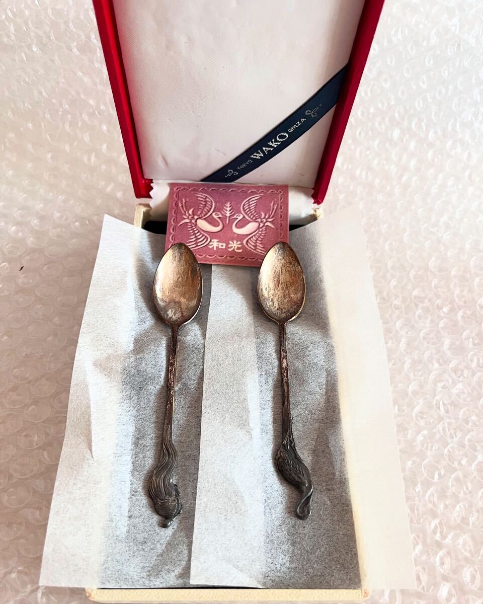 - 未使用 銀座 WAKO 和光 純銀 鶴 亀シルバー950 スプーン2本 計23.25g