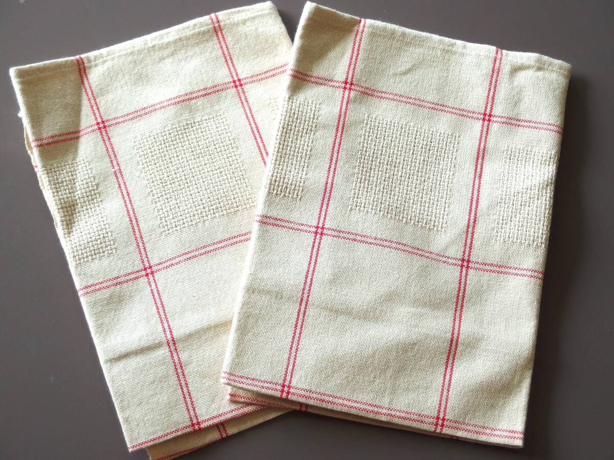 - 新品!スイス製 ヴィンテージ&レトロ ティータオル/クロス/テーブルセンター (生成り色に赤いライン) 45cmX69cm
